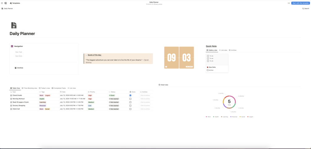 ✅ All-in-One Solution: With a Chart, Daily, and Time-blocking view, this template offers a comprehensive approach to managing your day. You’ll have everything you need in one place, eliminating the chaos of juggling multiple tools and apps.